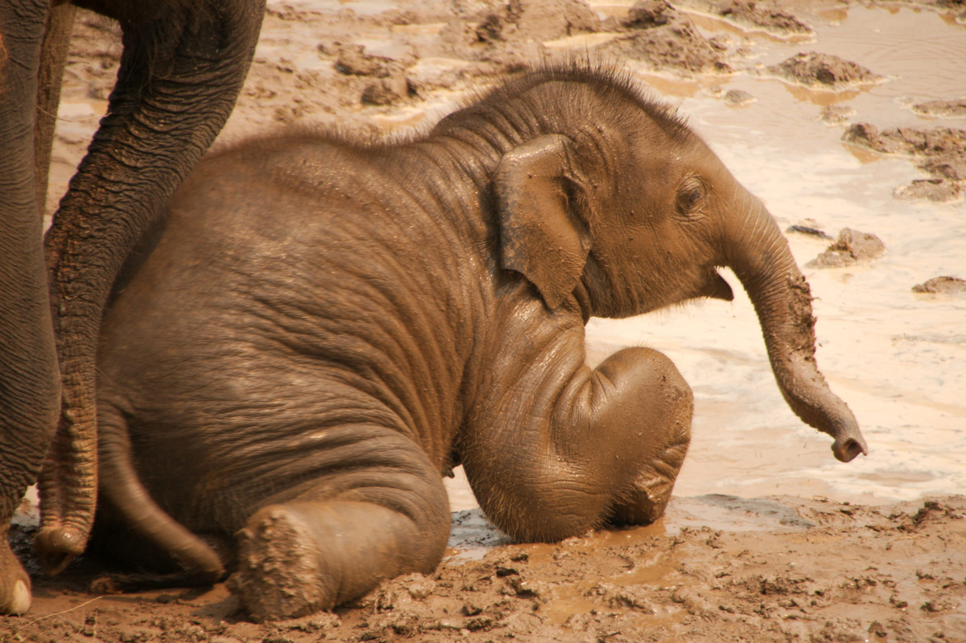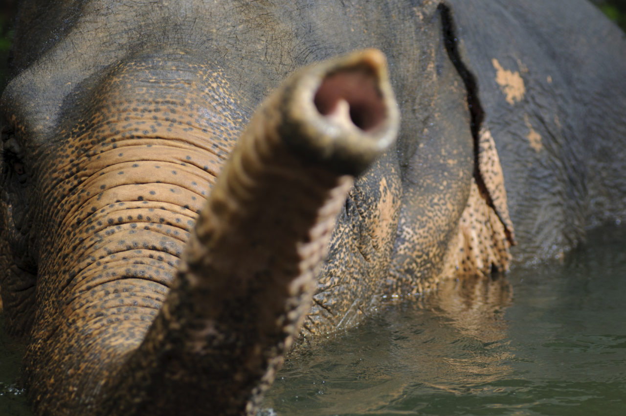 After almost two years in the womb and a few minutes to stretch its legs, the calf can begin to stumble around. But its trunk, an evolutionarily unique inheritance of up to 150,000 muscles with the dexterity to pick up a pin and the strength to uproot a tree, will be a mystery to it at first, with little apparent use except to sometimes suck upon like human babies do their thumbs. Over time, with practice and guidance, it will find the potential in this appendage flailing off its face to breathe, drink, caress, thwack, probe, lift, haul, wrap, spray, sense, blast, stroke, smell, nudge, collect, bathe, toot, wave, and perform countless other functions that a person would rely on a combination of eyes, nose, hands, and strong machinery to do.