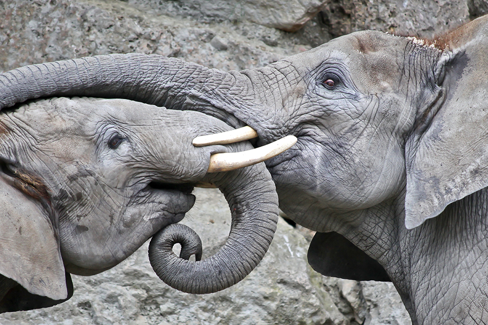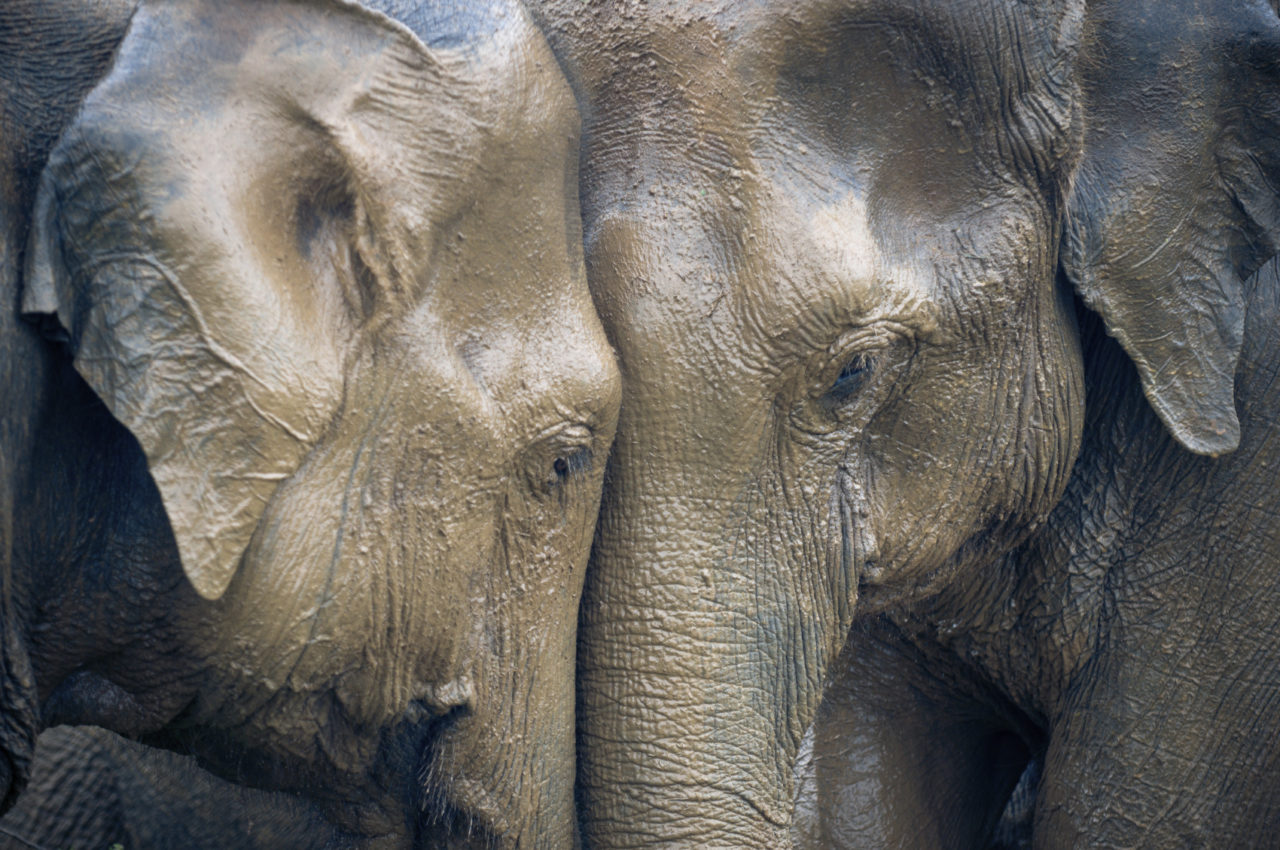 Of the many types of elephants and mammoths that used to roam the earth, one born today will belong to one of three surviving species: Elephas maximus in Asia, Loxodonta africana (savanna elephant) or Loxodonta cyclotis (forest elephant) in Africa. There are about 500,000 African elephants alive now (about a third of them the more reticent, less studied L. cyclotis), and only 40,000 – 50,000 Asian elephants remaining. The Swedish Elephant Encyclopedia database currently lists just under 5,000 (most of them E. maximus) living in captivity worldwide, in half as many locations — meaning that the average number of elephants per holding is less than two; many of them live without a single companion of their kind.