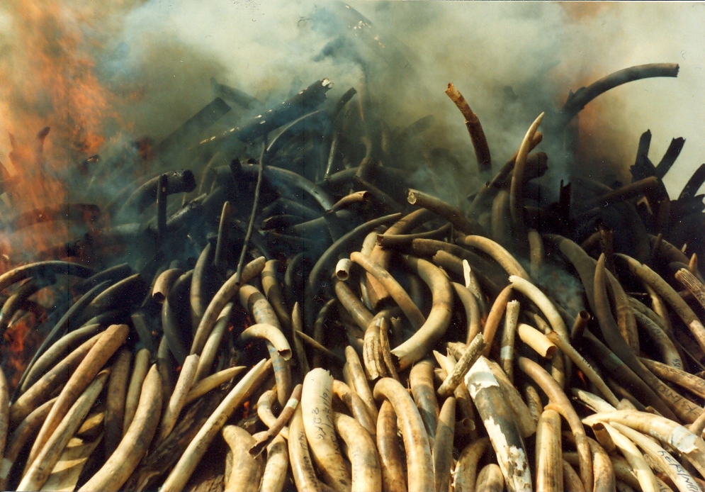 Commercial trafficking in Asian elephant parts was outlawed by ratification of the Convention on International Trade in Endangered Species (CITES) in 1975. The 1980s saw the population of African elephants drop by more than half, from 1.3 million to 600,000, which though initially attributed to habitat loss turned out to be the result of the skyrocketing ivory trade. Leading up to the 1990 CITES conference, rumors abounded that the African elephant was going to be placed on the protected list, as indeed it was, making all international trade in new ivory illegal. In the interim, however, poaching increased even more and countries with ivory were encouraged to sell it off while they still could. Kenya chose instead to make a statement, hauling out its entire stockpile of tusks — about 12 to 13 tons, worth $3 million — and torching it in a media-baiting bonfire.