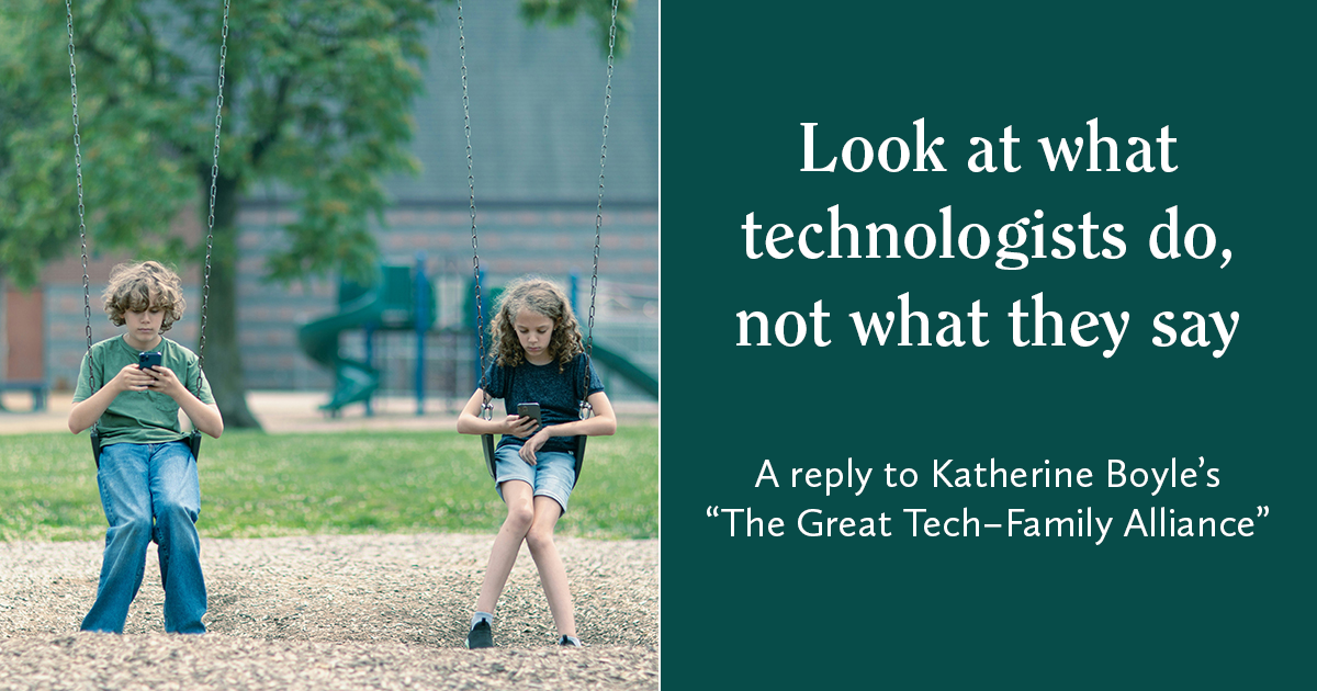 Neither the state nor tech is a perfect partner for the family. The state can be an ally in requiring age verification for pornographic sites, and tech can be an ally in surfacing formerly obscure (or carbonized) texts. The state more often serves to set limits, tech more often opens doors. Knowing which to do requires education in discernment and a community of co-discerners.