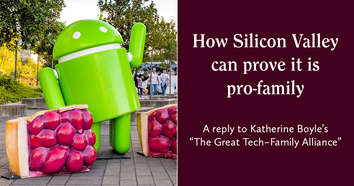 Unless and until we center human values and human virtues at the center of discussions of technology and the family, we are not having the conversations that matter. I hear little about human values and human virtues in Boyle’s remarks, beyond her noting that families are important. The rest is just marketing.