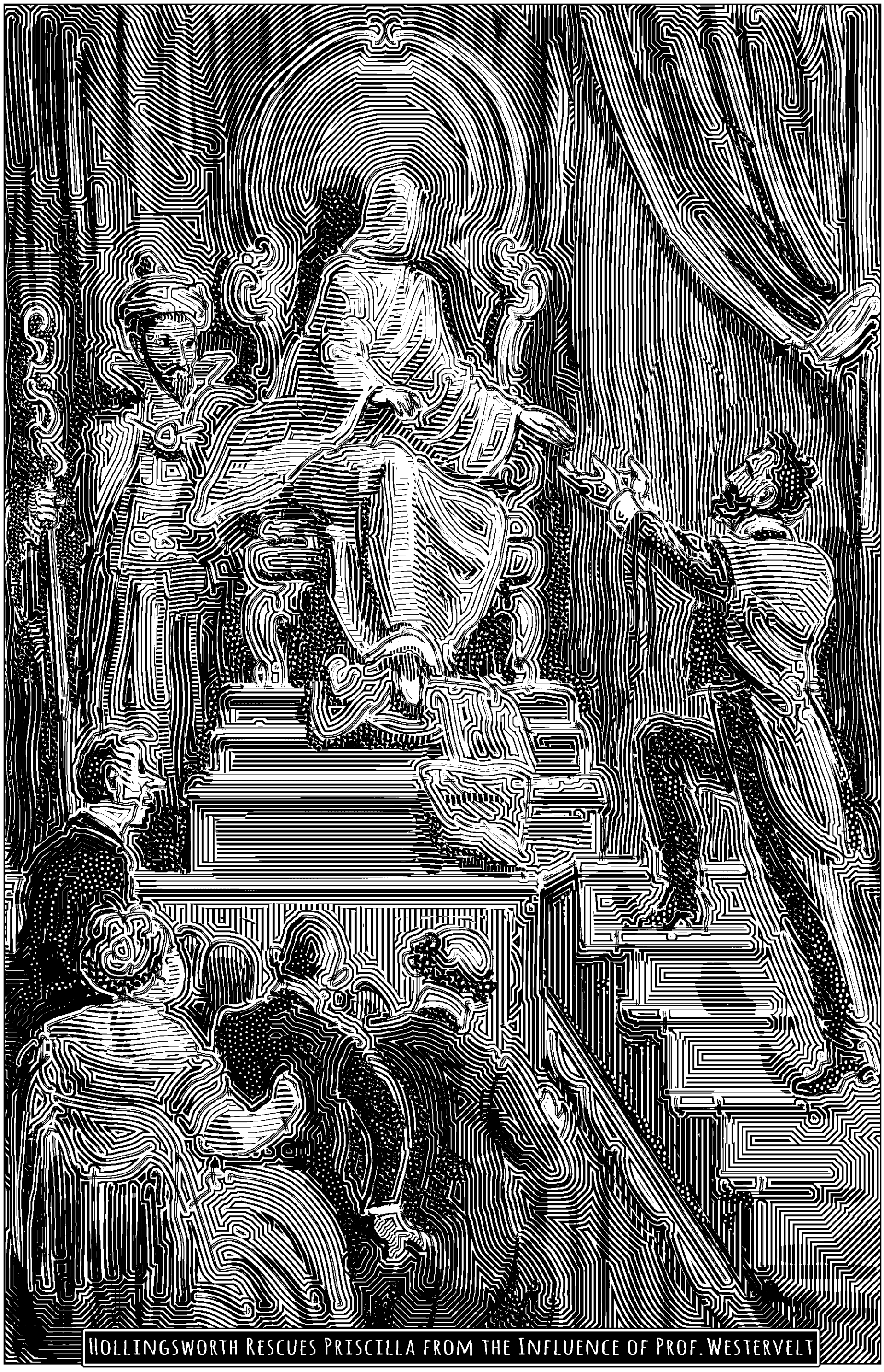 Meanwhile, Zenobia has been warned by an old acquaintance who pays her a secret visit in the woods near the farm, one “Professor Westervelt,” that Priscilla is a serious threat to her happiness. Although at first reluctant, Zenobia has come to serve as a kind of elder sister and protector of Priscilla since that first night on which Priscilla threw herself on Zenobia’s mercy. Zenobia’s initial response to Westervelt is to brush off his concern and declare that she will not turn on someone who is so utterly devoted to her. And yet, before long, Zenobia proves willing to consent to Westervelt’s plan to remove her rival. It turns out that Westervelt has a material interest in Priscilla, for he is none other than the magician who presides at the mesmeric exhibitions of the Veiled Lady, and Priscilla, with her “Sibylline” attributes, is the mysterious Veiled Lady herself. Feeling increasingly threatened by the growing attachment between Priscilla and Hollingsworth, Zenobia eventually consents to bring Priscilla back to the city, thereby removing her from Blithedale and Hollingsworth’s too-fond eyes. Westervelt promptly resumes his exhibitions of the Veiled Lady.