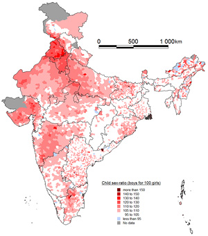 Differential infant and child mortality rates arguably also offer clues about son preference: societies where female rates exceed male rates (patterns arising from systemic discriminatory mistreatment of little girls) may be correspondingly disposed to prenatal gender discrimination as well. According to the World Health Organization’s 2009 Life Tables, over 60 countries currently experience higher infant or age 1-4 mortality rates for girls than for boys: a roster including much of South-Central Asia, North Africa and the Middle East, parts of Latin America and the Caribbean, and over a dozen countries in sub-Saharan Africa. If such gender bias in mortality turns out to be a predictor of sex-selection bias, this global problem may get considerably worse before it gets better.